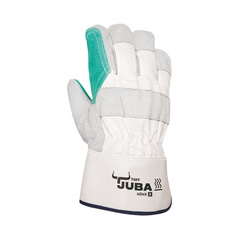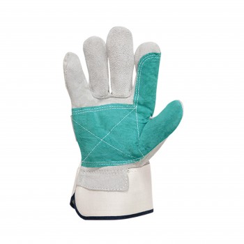 Guante de piel de serraje reforzado de vacumo y lona.