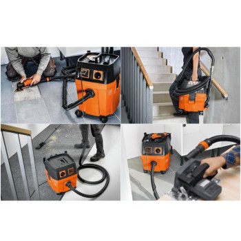 Potente aspiradora en seco y en húmedo compacta con conexión de herramientas eléctricas para usar en taller y obra.