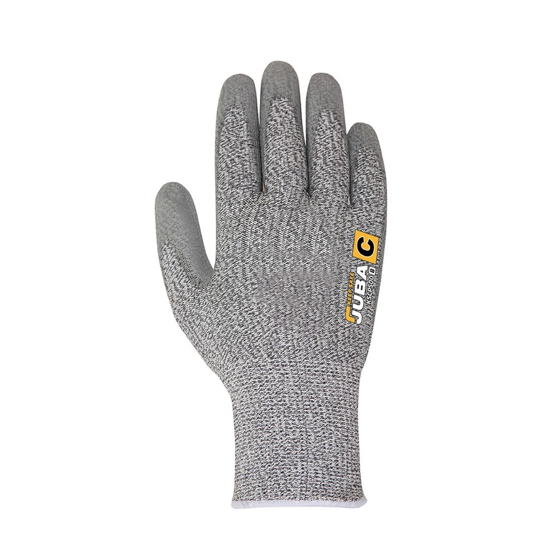 Guante sin costuras de fibra HDPE y fibra de vidrio recubierto de poliuretano en la palma