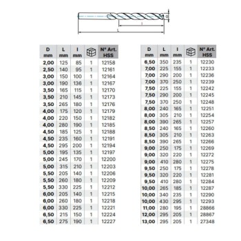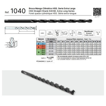 1040 - BROCA  IZAR MANGO CILINDRICO DIN 1869N HSS SERIE EXTRA LARGA